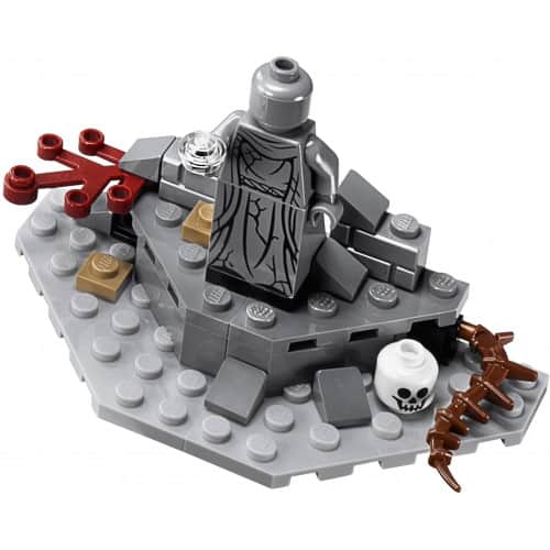 Defeat the forces of evil in an epic conflict with Dol Guldur Battle!Rumors of the rise of an ancient Evil have brought Gandalf The Grey and Radagast to investigate the fortress ruins of Dol Guldur. Flick the magical wall to make the sinister Necromancer of Dol Guldur appear to the Wizards. But beware - Azog and 2 Gundabad Orcs are about to attack with a rolling catapult. Can the brave Wizards dodge the skulls falling from the turrets and swinging blades and axe, and avoid being trapped in the spider web and hanging cage? Will Gandalf discover the treasures hidden within the statue? It's up to you to decide the fate of Gandalf and Radagast in this epic battle of good versus evil! Includes 6 minifigures with assorted weapons and accessories: Gandalf the Grey, Radagast, Necromancer of Dol Guldur, Azog and 2 Gundabad Orcs.Includes 6 minifigures with assorted weapons and accessories: Gandalf the Grey, Radagast, Necromancer of Dol Guldur, Azog and 2 Gundabad OrcsFortress features Necromancer magical wall, spider web, swinging axe and blades, huge spikes, falling skull trap, removable cage with crane and a statue with hidden treasure compartment with a Wizard ringAlso includes a firing catapultWeapons include a mace, club, 2 staffs and 3 swordsRadagast and Necromancer of Dol Guldur minifigures are exclusive to this setFlick the magical wall and make the Necromancer appear to the WizardsDrop the skulls above the entranceFire the catapultDiscover the Wizard ring hidden within the statueSwing the blades into the path of intrudersWatch out for the spider webTrap a minifigure in the cageCombine with 79011 Dol Guldur Ambush and stage the ultimate Dol Guldur conflict!Dol Guldur fortress measures over 9" (23cm) high, 16" (43cm) wide and 4" (12cm) deep